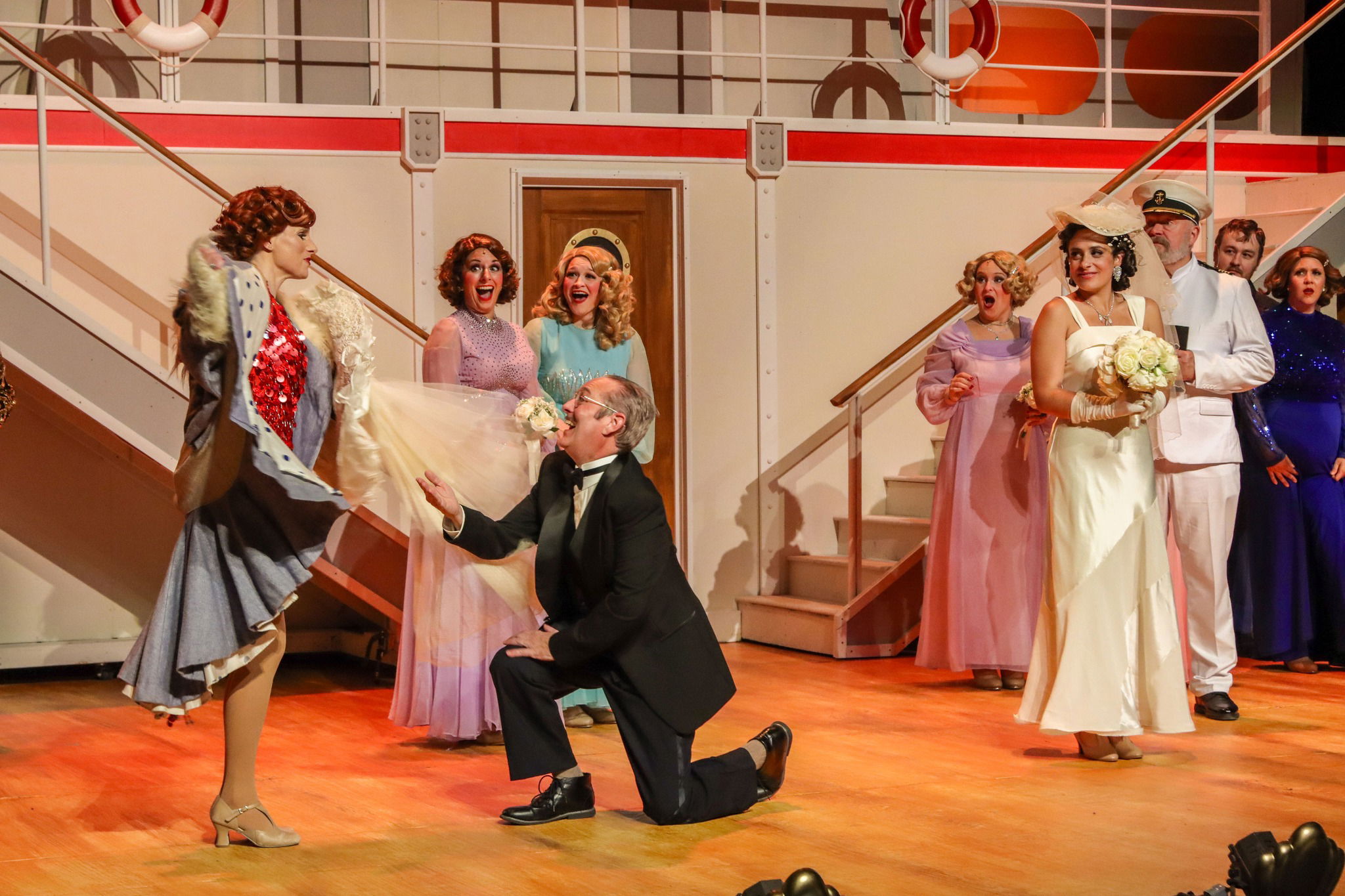 The balance of the Theatre at the Mount ensemble is made up of passengers, crew and Reno’s “Angels” which includes the delightful quartet of Charity (Amanda Lawton), Chastity (Jillian Whitney), Purity (Kristen Carpenito) and Virtue (Brianna Pascale).