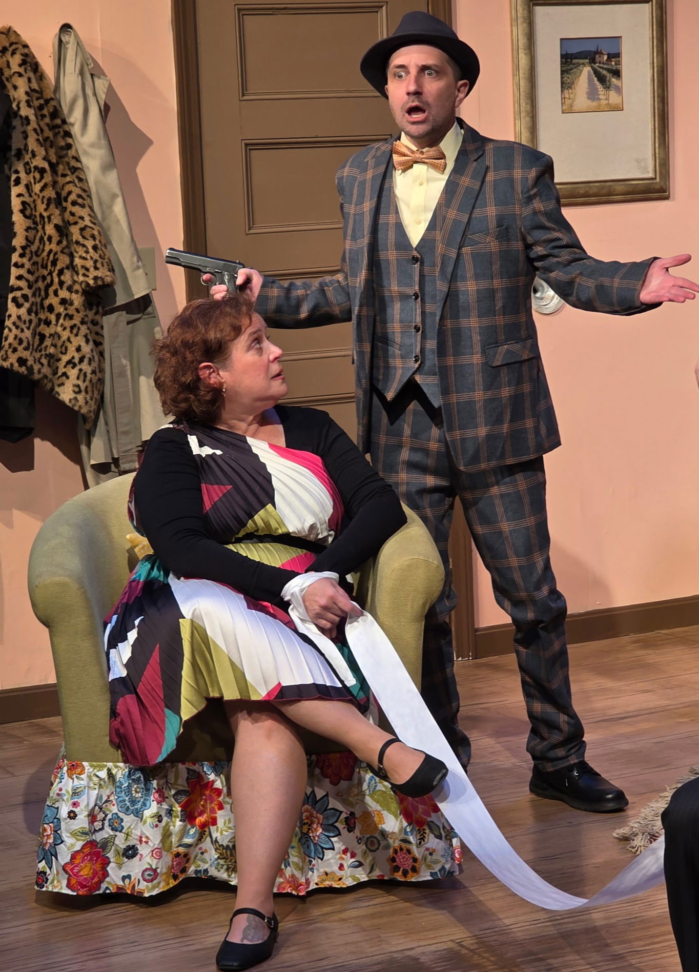 Federal agent Joe Shimko (Lee Pallotta) enters the apartment, and Deedee assumes he has arrived having gotten a tip that the bank robber, Orville Maddox (Brian Francis), is en route to eliminate the witness.