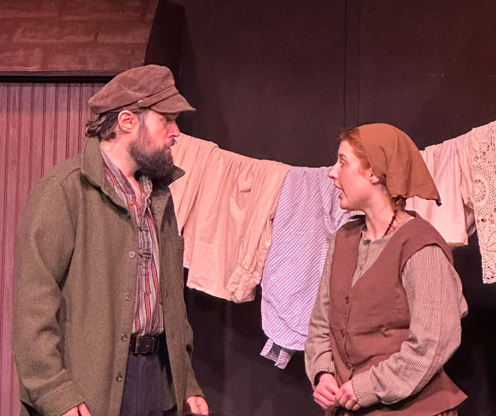 (Photo: Nicole Lian as “ Golde” with Evan Graber as “Tevye” in a scene from the musical "FIDDLER ON THE ROOF" from Calliope Productions in Boylston, MA. now playing through December 14, 2025. Photo Credits: Rob Killeen and Keith Ariel)