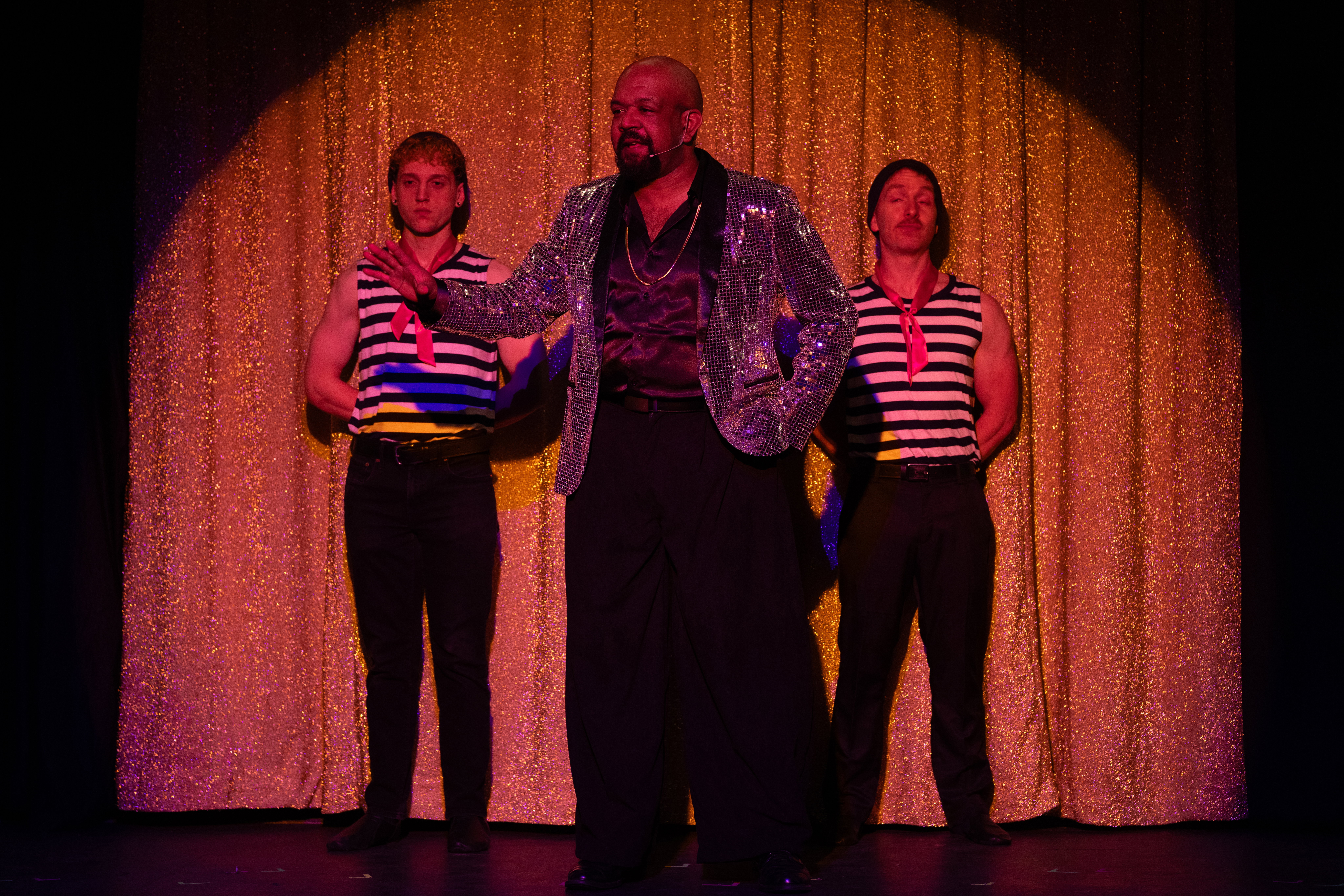He tells Georges and Albin that Anne’s ultra-conservative parents (played by Vic Kruczynski and Robyn Scott) are coming over to meet Jean-Michel’s “parents,” expecting to meet a (biological female) mother and (ditto male) father.