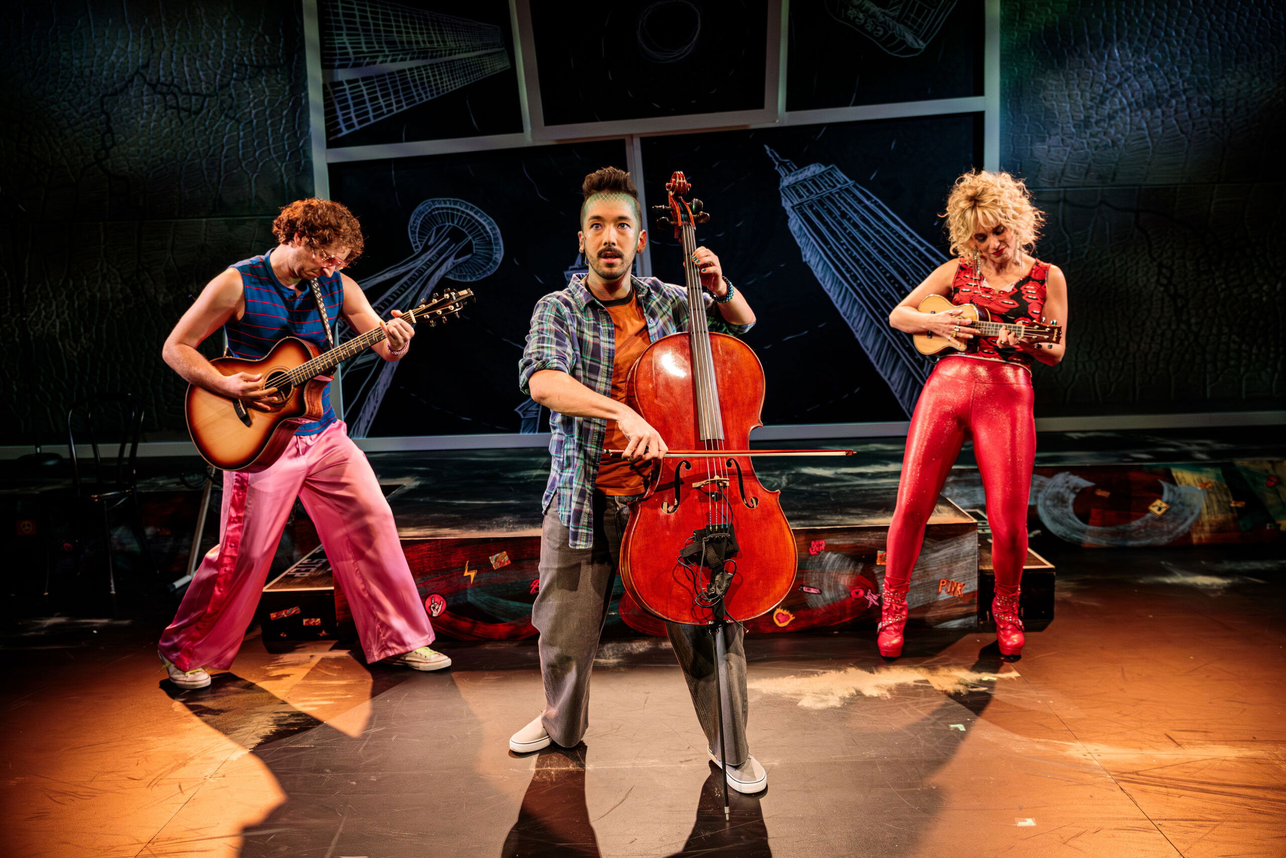 All accompaniment in the musical is performed exclusively by the three actors, alone or together, and all are skilled musicians as they play cello, guitar, ukulele, piano, kazoo, beatbox and other instruments.