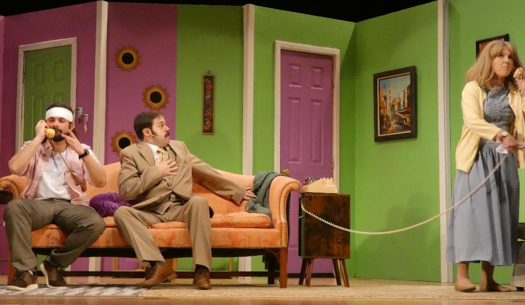 As intricately staged by Square One Players' director Jeremy Woloski, the story of "RUN FOR YOUR WIFE" has the actors running around at a rapid pace, bumping into one another, suffering prat falls and phone cord tie-ups (that last one being a dead giveaway for just how old the story is) and, of course, fun with doors - LOTS of fun with doors.