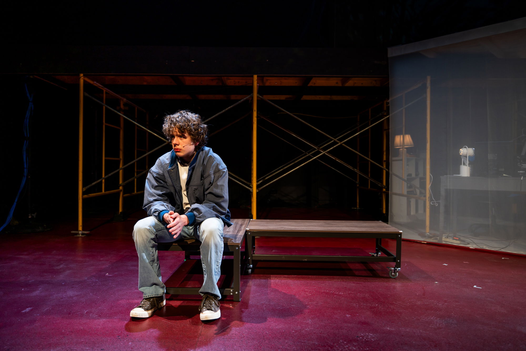 (Photo: Sean Wendelken as “Gus” in a scene from Ken Urban's "THE MODERATE," now playing at Central Square Theater in Cambridge, MA. until March 1, 2026. Photo Credit Nile Scott Studios)